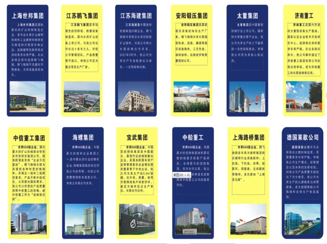 正是腾飞铸钢拥有雄厚的实力、先 进的技术和贴心的服务,吸引了一批又一批客户认可腾飞、信赖腾飞和选择腾飞。